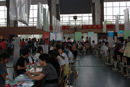 就业招聘与见习招聘相结合。截止5月底,该校还未就业的毕业生已不到10%,其中大多数是参加专升本考试未录取的学生。如果单独举行就业招聘会,由于毕业生人数少而很难满足招聘单位的需要。与见习招聘会相结合,吸引大二学生参与,使用人单位即使招不到毕业生,也可以招到见习生,同时也使应届毕业生深切的体会到母校的关爱。事实证明,这种结合的形式也得到了用人单位的欢迎。各参会单位对该校招聘会的组织工作感到满意,希望从大二开始就招聘学生到单位实习。如方正证券就是因为前一年曾聘用该校毕业生,使用情况不错,这次专程前来招聘实习生。