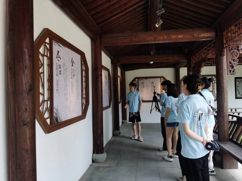 当天,实践团走进南山村村委会,在“赋能未来乡村,描绘共富画卷”主题座谈会上,围绕家风建设,南山村党委副书记沈高峰表示:“南山村充分发挥盛氏家风馆的教育引导作用,将盛氏祖训与新时代文明实践相结合,着力打造传承基地。但是文化外延能力、变现能力较弱,希望可以与高校合作,用现代设计语言传承南山家风文脉,彰显文化底蕴。”