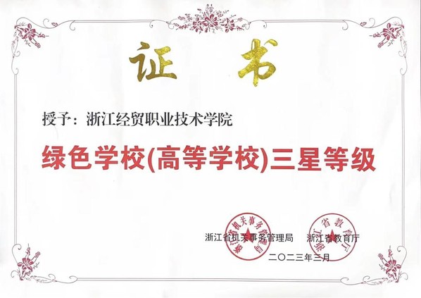 浙江省绿色学校(高等学校)创建评价分为三星(优秀)、二星(良好)、一星(合格)三个等级,此次获评“浙江省绿色学校(高等学校)三星等级”称号,是对我校绿色学校创建工作的充分肯定。学校将以此为契机,不断巩固绿色学校建设成果,积极践行二十大生态文明建设,持续深入探索学校绿色发展的新路径,助力学校下一步低碳学校、零碳学校的创建工作。