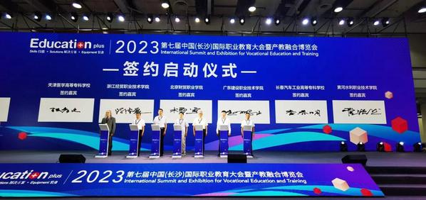8月15日-8月18日,第七届中国(长沙)国际职业教育大会暨产教融合博览会在湖南国际会展中心举行。来自全球10余个国家和地区200余家院校和企业近万名代表参加大会。学校校长陈德泉受邀出席大会开幕式并参加相关论坛交流活动。