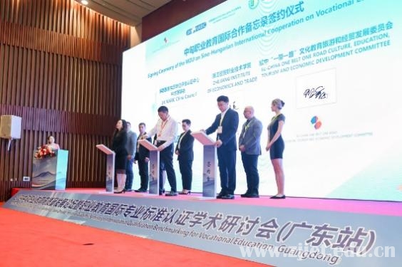 学校入选全国第一批“匈牙利国家职业教育数字资源库课程标准及数字化课程开发项目”建设单位,陈德泉受邀参加项目启动仪式并代表学校与英国国家学历学位评估认证中心中方理事会、欧中“一带一路”文化教育旅游和经贸发展委员会共同签署“中匈职业教育国际合作备忘录”。