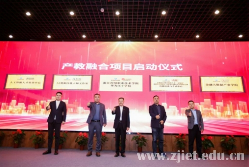 校企举行了产教融合项目启动仪式,学校与华为共建华为ICT学院,与浙江讯飞智能科技有限公司共建人工智能人才培养中心、AI创新技能大师工作室,与新华三集团共建首批浙江省数字技能人才“一试双证”技能培训与考试中心,与杭州同花顺数据开发有限公司共建金融大数据产业学院。