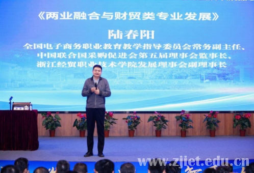 专家报告环节,陆春阳作题为《两业融合与财贸类专业发展》的主旨报告。他从两业融合的背景、意义、内涵、特征以及电子商务等财贸类相关专业如何转型发展的建构逻辑、路径方法、课程体系的重构等方面作了精彩阐述。整场报告高屋建瓴、深入浅出,富有理论性、思想性和指导性,对于学校下一步如何适应两业融合发展变化、优化调整专业设置、深化“五金”新基建建设等方面都具有很强的针对性、前瞻性和指导性。该环节由学校党委委员、副校长林锋主持。